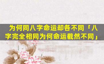尽管两 🐕 个人出生在同一时间和 🍁 地点,但,他,们的命运各不相同是由多种因素共同作用 🐺 的结果包括命理学的局限性、后、天因素的、影、响命运的可变性复杂的人性社会背景和时代变化以及随机事件。