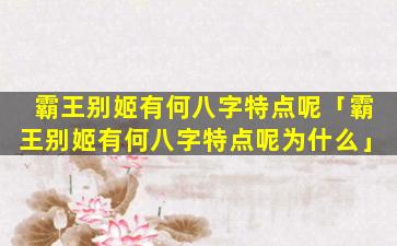 霸 🦟 王 🐼 别 🐛 姬八字特点: