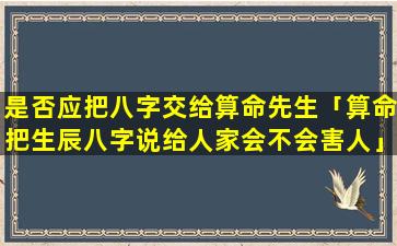 是否应把 🐈 八字交给算命先生看,这是一个需 🐬 要权衡利弊 🌼 的个人决定。