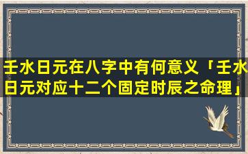 壬水日 🌿 元对应十二个固定时辰之 🦉 命理 🐈