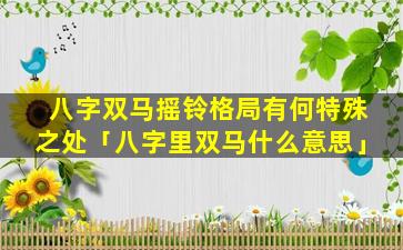 八字中出现两 🌴 个「午字」且,相「邻」而,排「为午午」时称为双马摇铃格局。