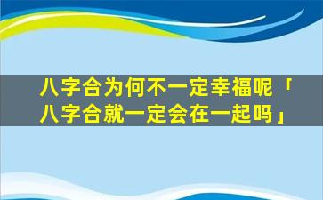 八字合并不一 🐧 定表示幸福的原 🐺 因 🦅 :