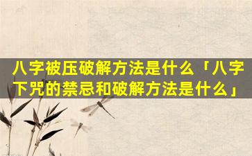 破 🐼 破解八字被压是一个系统工 🐞 程,需,要综合多种方法不可急于求成。