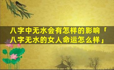 需 🐺 要注意的是:八字中无水的影响会 🌴 因其他命理因素 🌻 的影响而有所不同命。主可以根据自己的八字格局,结,合其他。五行旺衰情况具体分析其对自身的影响