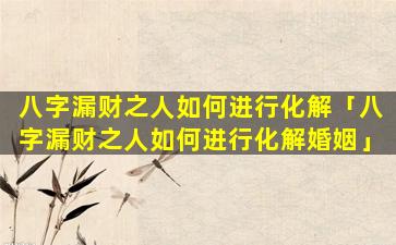 八字漏财之人如 🦈 何化解婚 🌿 姻