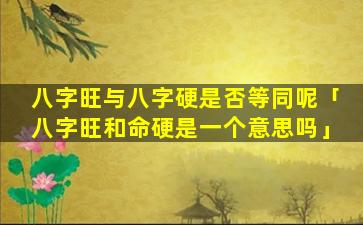 不,八字 🌾 旺和八字 💮 硬是不同的概念。