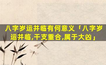 此说法并不准确。八字岁运并临、干。支、重、合并。非绝对的大凶之兆具体情况需根据命理的整体 🍁 布局五行生克十神搭配等综合判断
