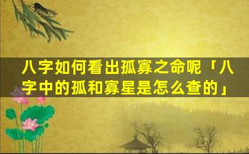 如何查八字中 🐡 的孤寡星