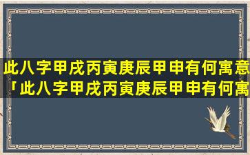 此八字甲戌丙 🐞 寅庚辰甲申的寓意 ☘ 如 🐟 下: