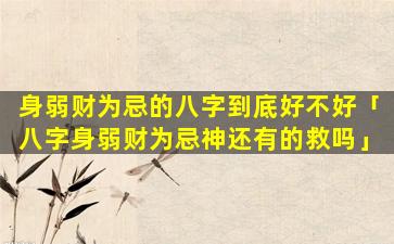 身弱财为忌的八字好坏取决于具体情况,需要综 🦢 合以下 🐬 因素考虑: