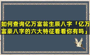 亿万富豪八 🐺 字的六 🐵 大特征
