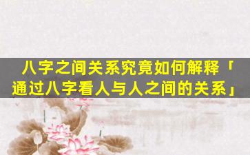 通过八 🐯 字看人与人之 🐧 间 🐼 的关系
