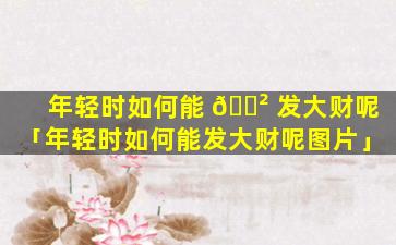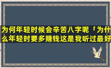 年轻时多赚 🐺 钱最重 🌳 要的原因 💮 :