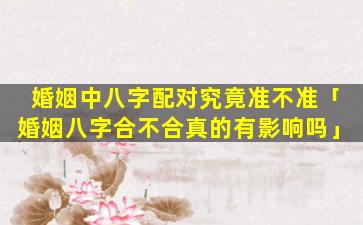 八字配对的准确性是一个有争议的问题,目前缺乏科学证据对其准确性进行充分的证明对。于,婚,姻配对。它,可,以作为一种参考但不能完全依赖在判断婚姻的吉凶时需要考虑多种 🐼 因素例如双方的性格、价、值。观经济条件和家庭背景等