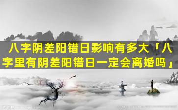 对 🌵 于“八字阴差阳错日”的影响 🌷 有多大,在不同的命理学说中存在不同的看法有的。认,为其影响很大会带来 🐕 诸事不顺、感情波折等负面作用有的;则,认。为其影响较小不会对人的一生产生决定性作用