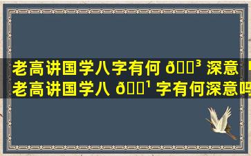 老高 🐞 讲国学八字 🌳 的深意可能 🐳 包括: