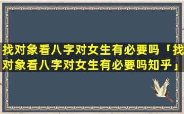 找对象看八字对女生有必要 🐳 吗?