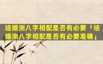 结婚测 🐕 八字相 🌿 配的必要 🐛 性