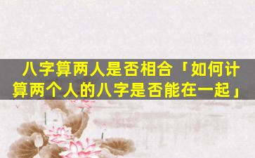 八 🐒 字算两人是否 🌻 相 🐯 合的方法