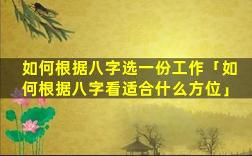 要根据 🌷 八字选 🐟 一份工作,需要先了解个人的 💐 八字命理。