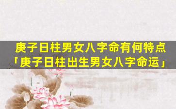 庚 🌸 子日柱出生男女八 🐎 字命运