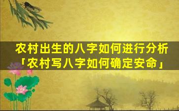 农村 🌿 出生八 🐈 字分 🐧 析方法