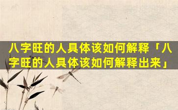 具体解释一个八字旺的人 🦋 具有以下特点: