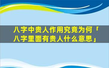 八字中的贵人对 🐟 命 🌵 格的 🐞 影响