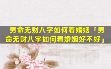 男命无财八字看 🐶 婚姻 🐯 好坏