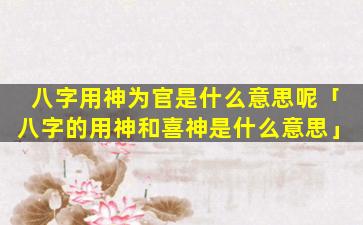 需要注意 🌾 的是,八,字用神为官的具体含义还需要结合命局的 🐎 其他因素来综合判断如官星的强弱、旺、衰是、否有生扶是否受冲克等。