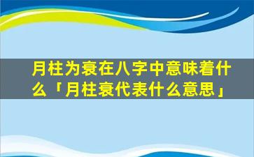 月柱衰弱 🐝 ,是,指,在八字命理 🐠 中日柱的天干与 🦅 月柱的天干相生相合的程度较低导致月柱的能量较弱。
