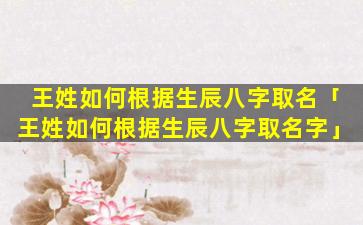 王姓生 💮 辰八字取 🦄 名方法 🍀