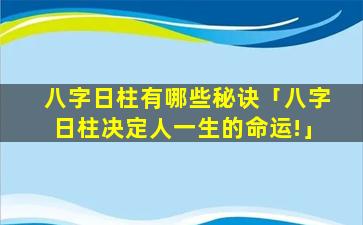 八 🐵 字日柱 🦟 秘 ☘ 诀