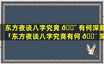 《东方夜 🐶 谭·八字》的深意
