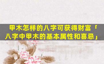 具 🐶 体而 🦍 言,甲木日主以下八字格局易得财富: