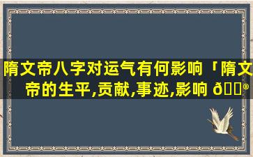 隋文帝杨坚的八字身强旺盛 🐱 ,格,局高贵有利于取得功名富贵。但,财。星,受,损。可能会影响中年的财运晚年行癸亥大运运势回升事业和财运都会得到改善