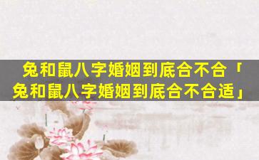 兔 🦍 和鼠八字婚姻 🌺 解析