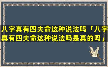 在传统的八字命理学中,确 🐧 实有“四夫 🐬 命的”说法。