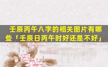 [图片]壬 🦍 辰日丙午 🐈 时吉 🕊 凶: