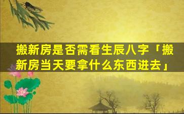 搬新房是否看生辰八字是一个个 🌸 人选择。如果相信传统习俗,可以考虑参考生辰八字择吉避凶如果;持,怀。疑态度则可以根据实际需求和喜好来选择搬家日期和房屋