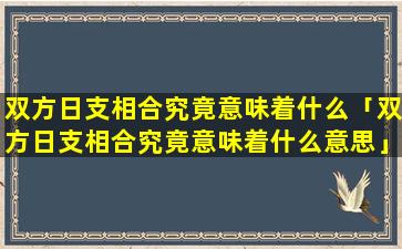 双 🐧 方日支相 🌷 合的寓意 🐡 :