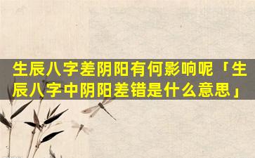 在生辰八字学中,“阴阳差”是,指生辰八字中阴阳五行元 🐠 素失衡具体影响包括: