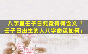 壬子日出生 🌺 人的 🐠 八 🐡 字命运
