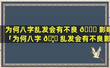八字乱发被认为会有 🐬 不良 🦢 影响 🌵 的原因如下: