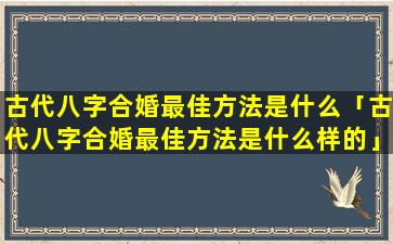 古代 🕸 八字合婚最佳 🦄 方 🐺 法
