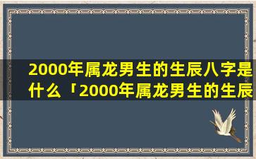 生辰八字是八字命理学中的重要概 🦋 念,由出生年 🌴 月日时所对应的干支组成对。于年2000属,龙的男性其生辰八字如 💐 下: