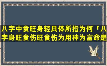 八字中“食旺”指食 🐈 神过 🐎 旺,而“身”轻指日主(自己身)弱 🐦 。