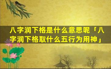 润下格 🐈 走各大 🦄 运的好坏: