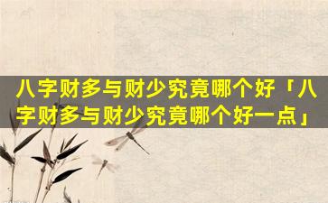 通常情况下,八,字财多 🐛 优于财少但也要视具体情况而定。
