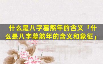 八字墓煞是 🐋 一 🌷 种命理学术语,指,个人的出生八字中出现特 🦅 定组合可能对运势或健康造成不利影响。